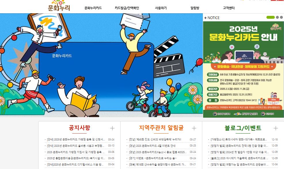 - 문화누리카드 공식 홈페이지 접속