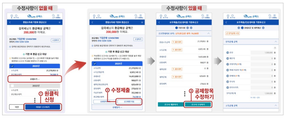 혹시 변경사항 있으면 자동으로 채워진 신고서 수정도 가능하답니다.